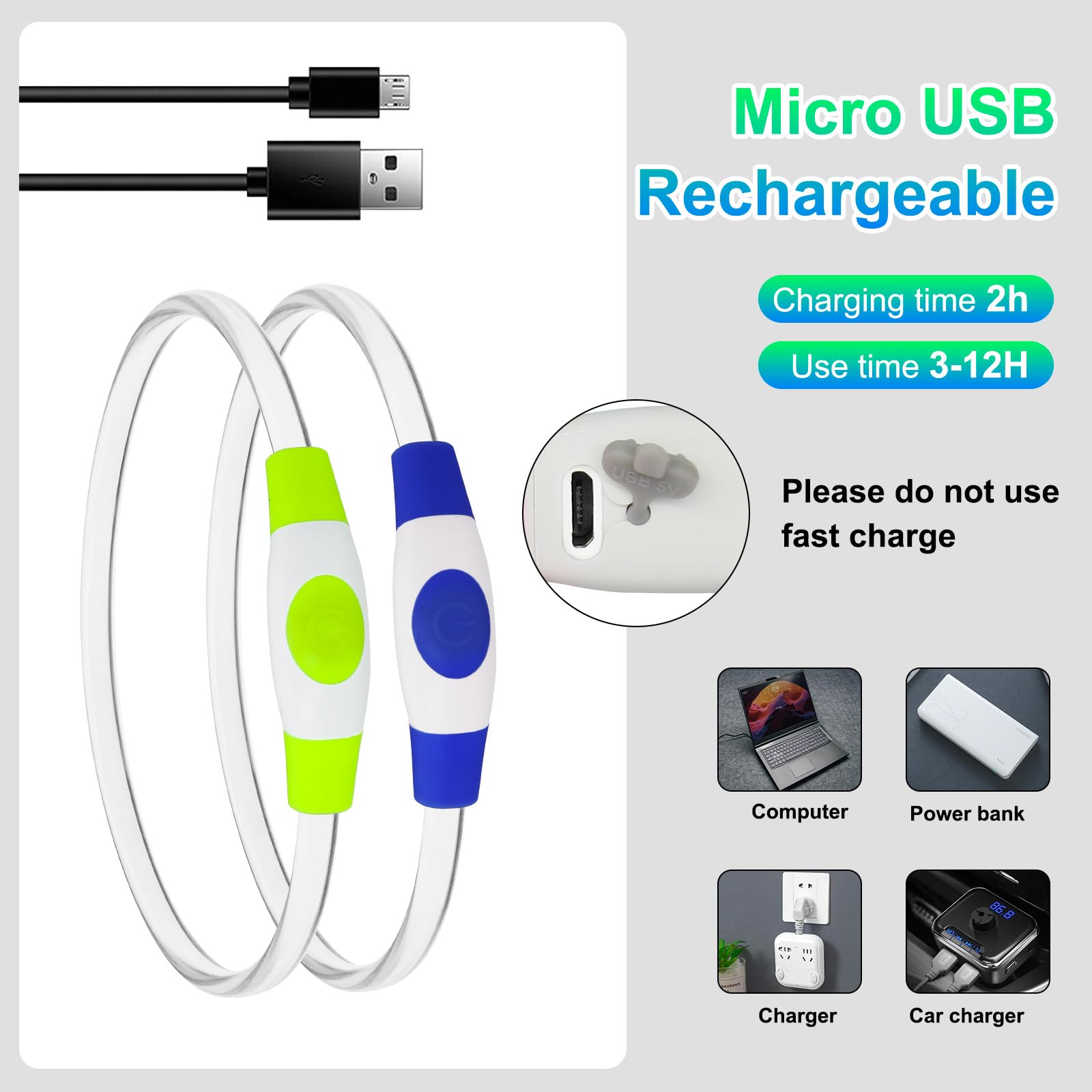 - USB RECHARGEABLE: Dog light up collar charges just 1 hours to reach full power. Once charged, it provides up to 8 hours of fast flashing, 12 hours of slow flashing, or 3 hours of steady glow. This ensures your pet remains visible throughout long walks or extended outdoor activities