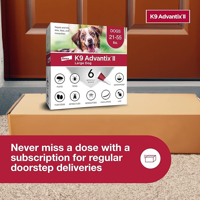 - K9 Advantix II Large Dog 30-day treatment & prevention protects dogs 21-55 lbs. from fleas, ticks, mosquitoes, biting flies and lice