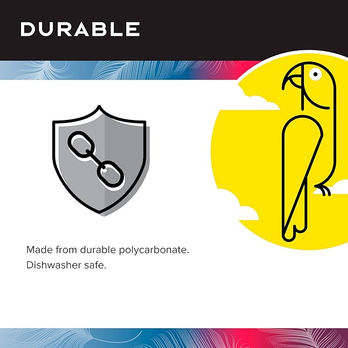 - SPECS: This feeder is constructed with dishwasher safe, durable polycarbonate, making it easy to keep clean for your beloved pet birds; The dimensions are 7" x 4" x 9" and the Gen II Foraging Wheel is recommended for large birds