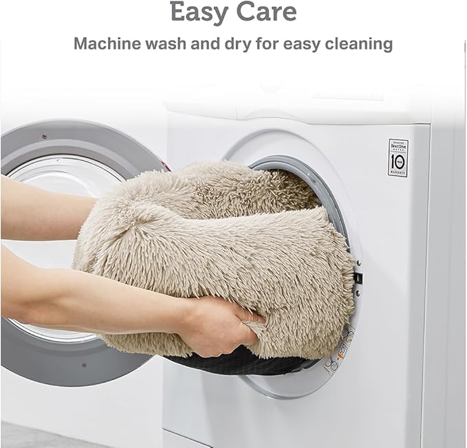 Friends Forever Luna Donut Cat Bed Cave, Soft Faux Fur Hooded Blanket Dog Couch For Indoor Pet, Fluffy Calming Plush Shag, Cozy Round Cushion, Machine Washable Cuddler, Self Warming, Tan, Small (23"x23"x6")