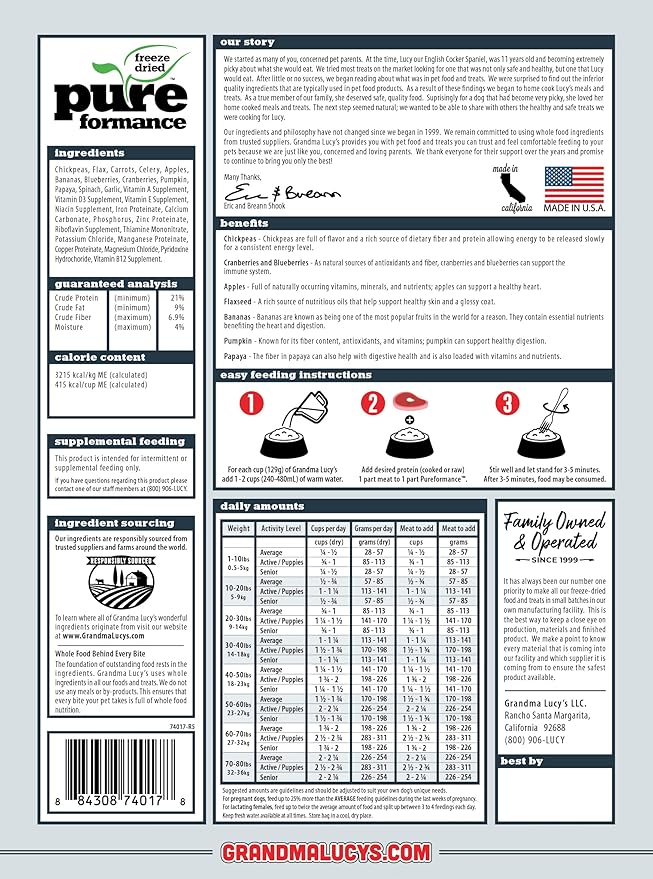Grandma Lucy's PUREformance Pre-Mix Dog Food, Grain Free and Freeze-Dried - 8Lb Bag