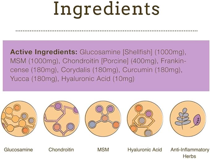 - Msm & anti-inflammatory herbs provide natural pain relief – while Glucosamine, Chondroitin, and hyaluronic acid are the foundation of joint health, Our advanced joint support formula includes natural ingredients for dog pain relief. Frankincense, curcumin, Corydalis, and Yucca reduce inflammation and provide immediate herbal pain relief for dogs.