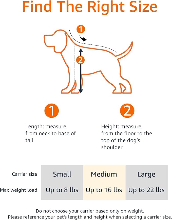 - Before purchasing, please measure pet's length (neck to base of tail) and height (floor to top of shoulder)
