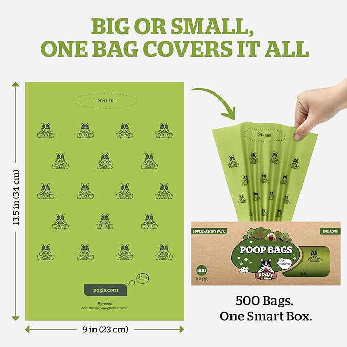 Pogi's Poop Bags – Large, Leak-Proof Dog Waste Bags for Yard or Home Use, Unscented (Single Roll, 500-Count)