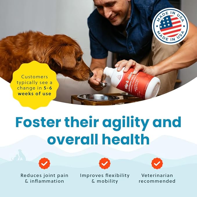 - Easy-to-Use Liquid Love For Your Furry Friend: Forget pills or chews! Our dog glucosamine chondroitin liquid mixes easily into meals or water; this vet recommended joint supplement supports fast absorption and joint stiffness relief