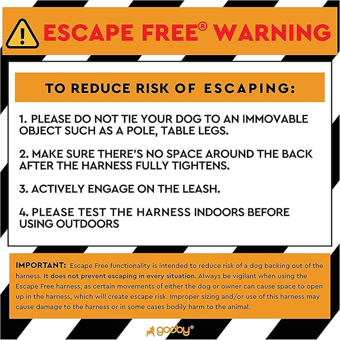 - Machine Washable – The Gooby escape free harness is very easy to clean. Just machine wash cold and hang dry.