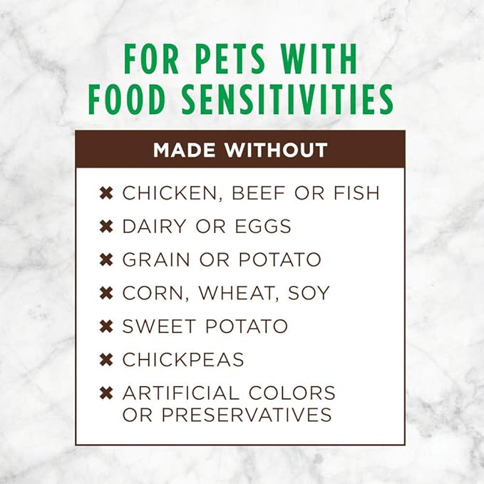- GRAIN FREE DOG FOOD FOR DOGS WITH SENSITIVITIES: Instinct Limited Ingredient dog food is made with 1 protein & 1 vegetable. No grain, dairy, eggs, chicken, beef, fish, sweet potato, potato, chickpeas, corn, wheat, soy, artificial colors or preservatives.
