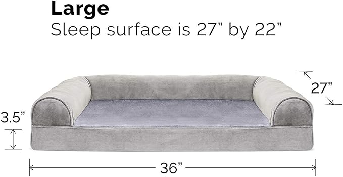 Furhaven Orthopedic Dog Bed for Large/Medium Dogs w/ Removable Bolsters & Washable Cover, For Dogs Up to 55 lbs - Faux Fur & Velvet Sofa - Smoke Gray, Large