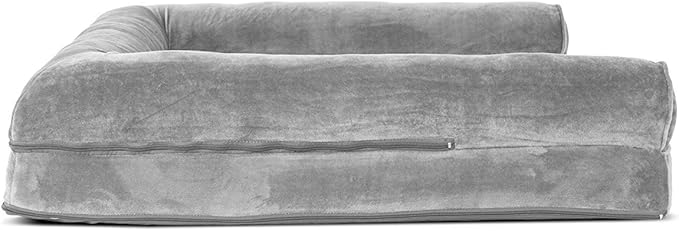 Furhaven Orthopedic Dog Bed for Large Dogs w/ Removable Bolsters & Washable Cover, For Dogs Up to 95 lbs - Faux Fur & Velvet Sofa - Smoke Gray, Jumbo/XL