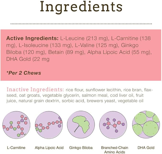 - ADVANCED NUTRACEUTICAL FORMULA - This veterinarian-developed formula helps to maintain mental well-being by supporting and maintaining proper cognitive function using phytonutrients. Senior Dog Wisdom contains ingredients like L-Carnitine, Alpha Lipoic Acid, Branched Chain Amino Acid, Ginkgo Biloba and DHA, which are known to support a healthy brain.