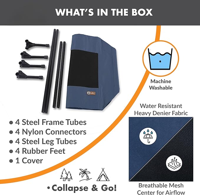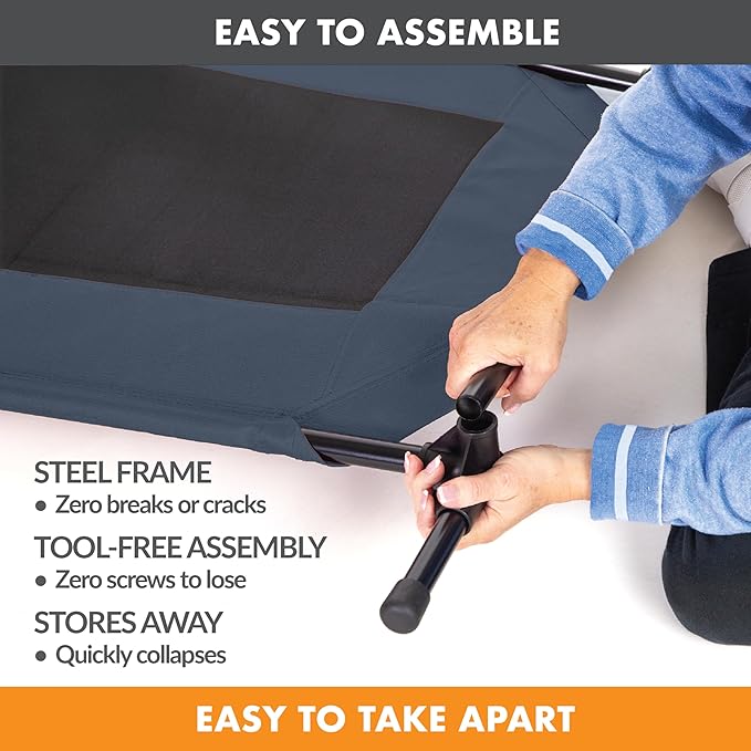 - COLLAPSIBLE: Collapsible dog cot is easy to assemble and disassemble, no tools necessary making this portable bed great for use during travel, camping, picnicking, place board training and more