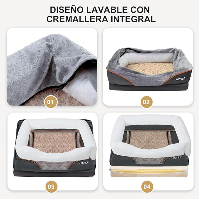 - BETTER DESIGN:①The base high-density memory foam can provide the ultimate sleep experience with superior overall comfort and to last;②The bottom is lined with to avoid the bed from ever sliding around;③Soft & Full comfy PPcotton-padded Bolsters (couch arms) surround a whole circle can protect your pet's neck.④The hidden zipper of this orthopedic dog bed makes the product look better;⑤Internal liner to protect memory foam from liquids.