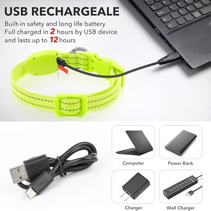 illumifun LED Dog Collar for Puppy, USB Rechargeable Light Up Collar, Lightweight Nylon Glowing Dog Collar for Your Small Pups& Cats (Green, X-Small)