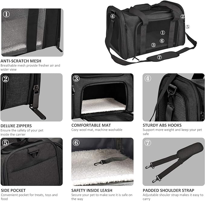 - AIRLINE APPROVED CARRIER - With airline-approved design, you can take your pet to go to everywhere. This pet carrier provides two connecting loop handles for balanced carrying as a dual seat belt or luggage strap to secure transport