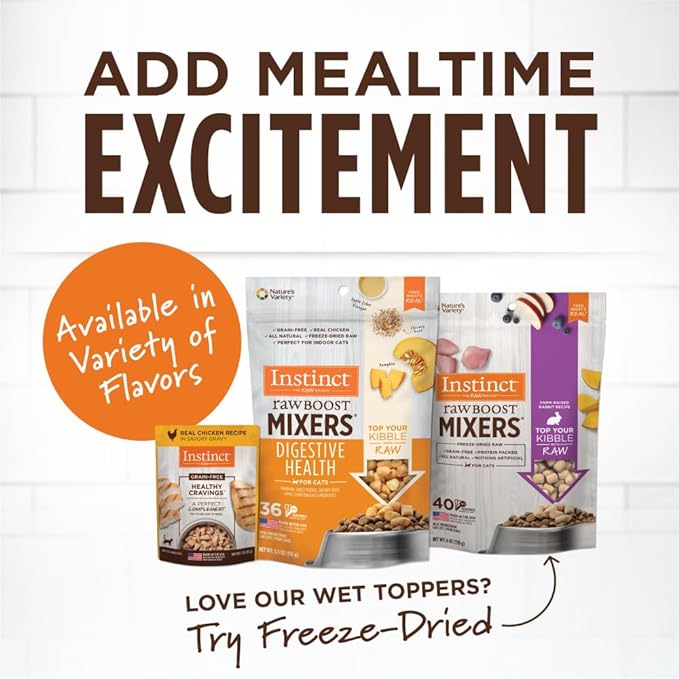 - GRAIN FREE CAT FOOD TOPPER VARIETY PACK: Instinct Healthy Cravings wet cat food topper variety pack contains the perfect selection of natural cat food toppers or cat treats for picky kitties. Add the delicious taste and variety your cats crave.