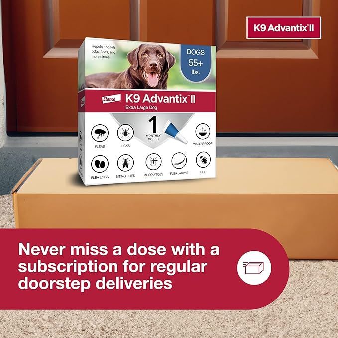- K9 Advantix II Extra Large Dog 30-day treatment & prevention protects dogs over 55 lbs. from fleas, ticks, mosquitoes, biting flies and lice