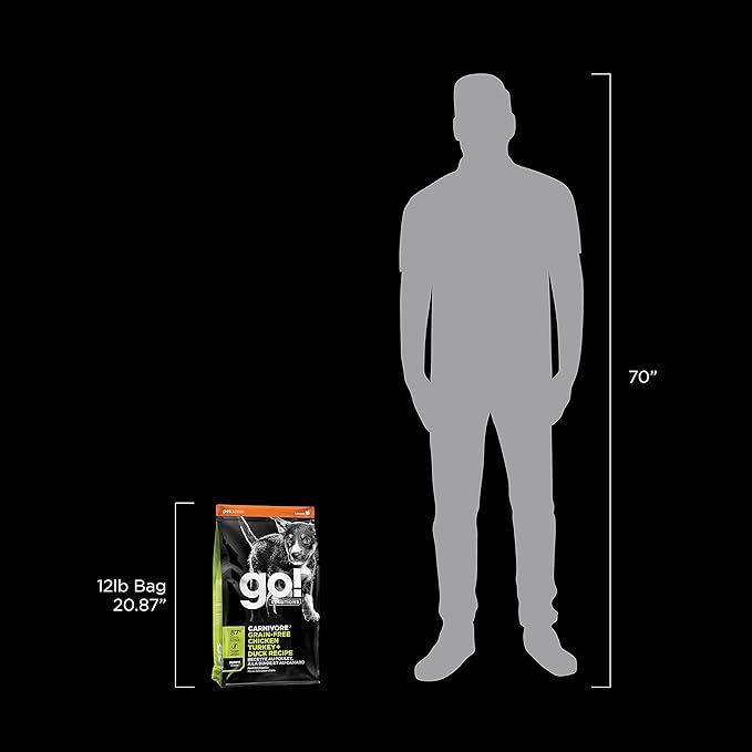 Go! Solutions Carnivore, Grain-Free, Protein Rich Dry Dog Food, Chicken, Turkey and Duck Puppy Recipe, Small Kibble, 12 lb Bag