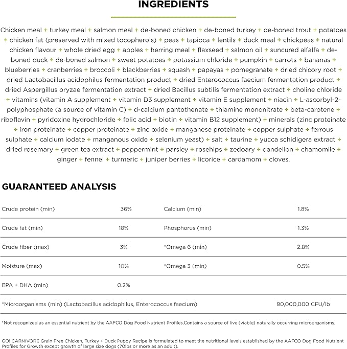 - PROTEIN-RICH FOOD TO SUPPORT STRONG, LEAN MUSCLES: The first six ingredients and 87% of the protein in our grain free CARNIVORE Chicken, Turkey + Duck puppy food comes from real premium-quality meat + fish.