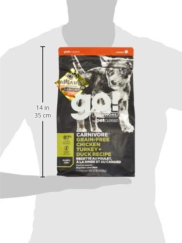 Go! Solutions Carnivore, Grain-Free, Protein Rich Dry Dog Food, Chicken, Turkey and Duck Puppy Recipe, Small Kibble, 3.5 lb Bag