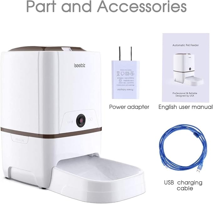 - ➤ 【Easy to use & Compatible with Alexa】You just follow the instruction manual to connect the Iseebiz Smart Feeder to your WiFi (only 2.4GHz), then control your feeder on your mobile device anytime anywhere. If you have any Amazon Alexa devices, add Iseebiz to your Alexa skills, give an extra snack to your fur kid with Alexa when you are home.