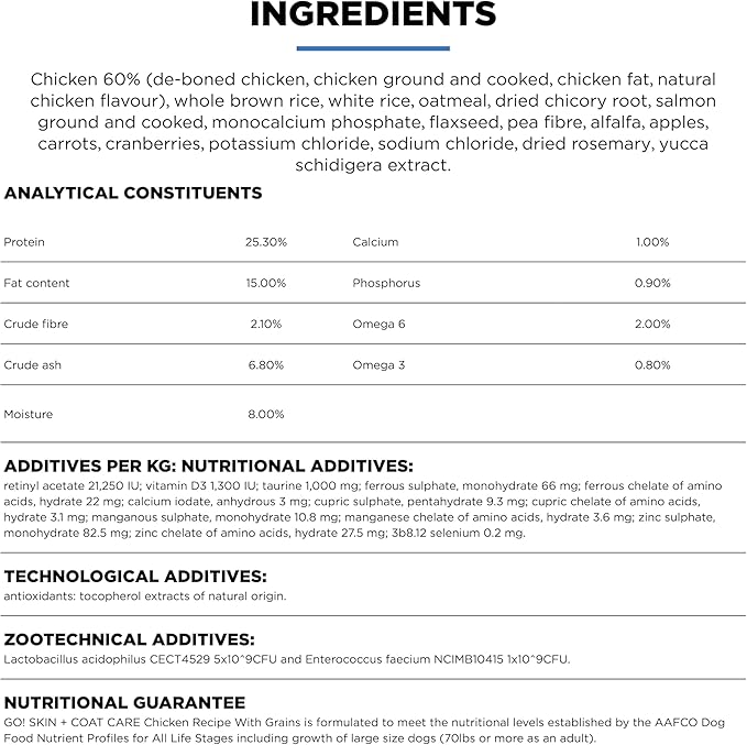 Go! Solutions Skin + Coat Care, Dry Dog Food, Chicken Recipe with Grains, 3.5 lb Bag