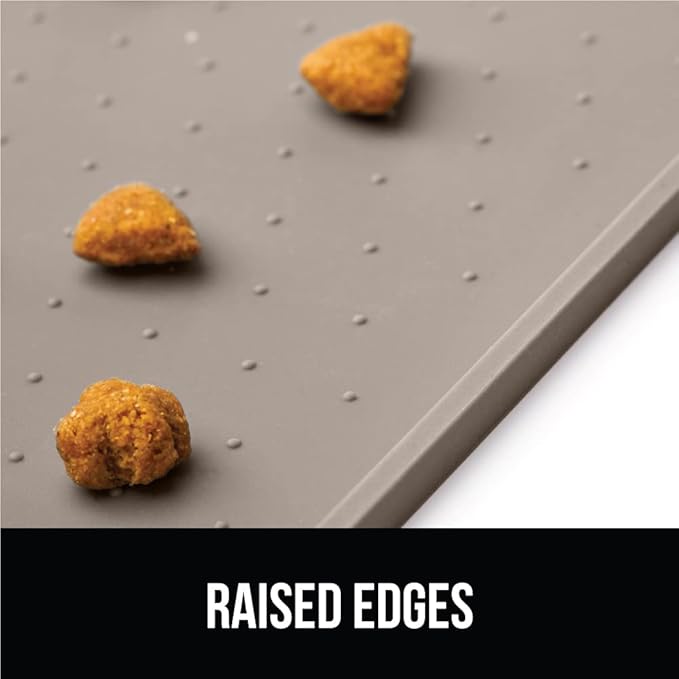 GORILLA GRIP 100% Waterproof Raised Edge BPA Free Silicone Pet Feeding Mat, Dog Cat Food Mats Contain Spills Protects Floors, Placemats for Cats and Dogs Water Bowl, Pets Accessories 18.5x11.5 Beige