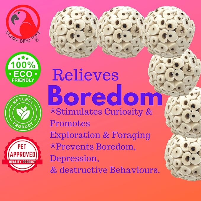 Bonka Bird Toys 2117 Pk6 Sola Atta Balls Foot Talon Craft Part Parrot Bird Toys Conure Parakeet Cockatiel and Similar