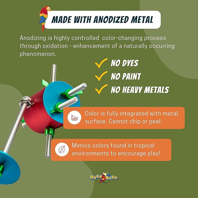 - ENCOURAGES PLAY AND EXERCISE - Mounted on the cage, this interactive bird toy promotes balance and endurance. Birds manipulate wing nuts, encouraging physical activity and mental stimulation. Great also for parrot toys for large birds and large bird toys, fostering healthy play habits.