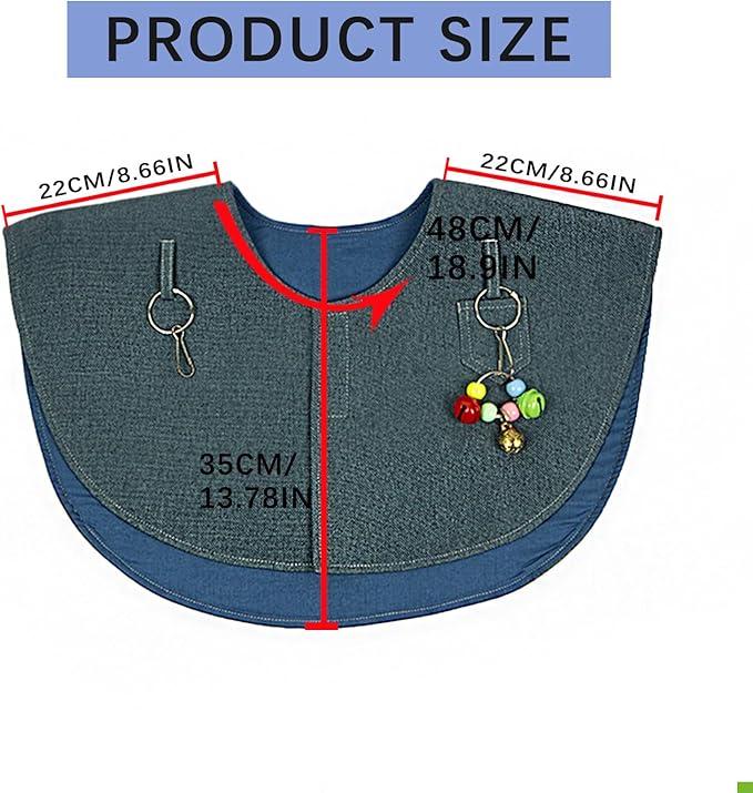 - Easy to Take on/off: Pet bird shoulder poop protector magic tape design make you can wear it and take off easy and quickly, You can wear it out of your coat directly; Shawl Width 47cm/18.50IN, height 32cm/12.60IN, Shawl neck 48cm/18.90IN