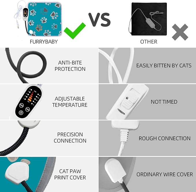 - 【SAFETY FIRST】- The cat heating pad is a built-in intelligent overheat protection sensor, will maintain a constant temperature you set when your pet sleep on it