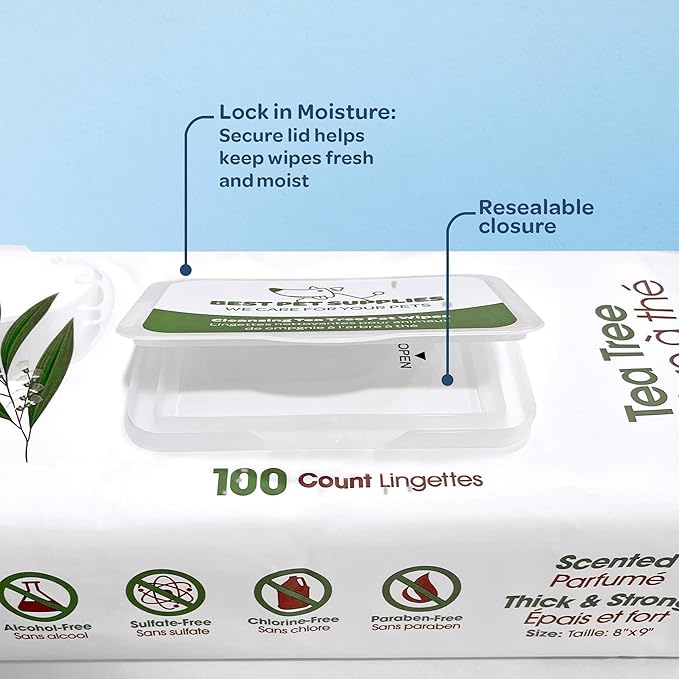 Best Pet Supplies Pet Wipes for Dogs - Dog Wipes Cleaning Deodorizing, for Coats, Ears, Paws - Cleansing Tea Tree, 100 Count