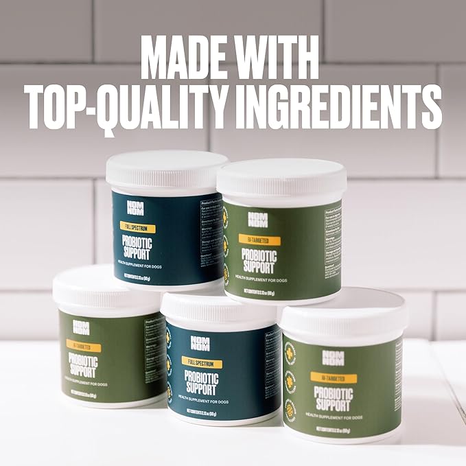 - BE GOOD TO THEIR GUT: Nom Nom GI-Targeted Probiotic Support helps maintain stool quality and overall digestive health by promoting a healthy microflora, which is especially beneficial after an antibiotic treatment.