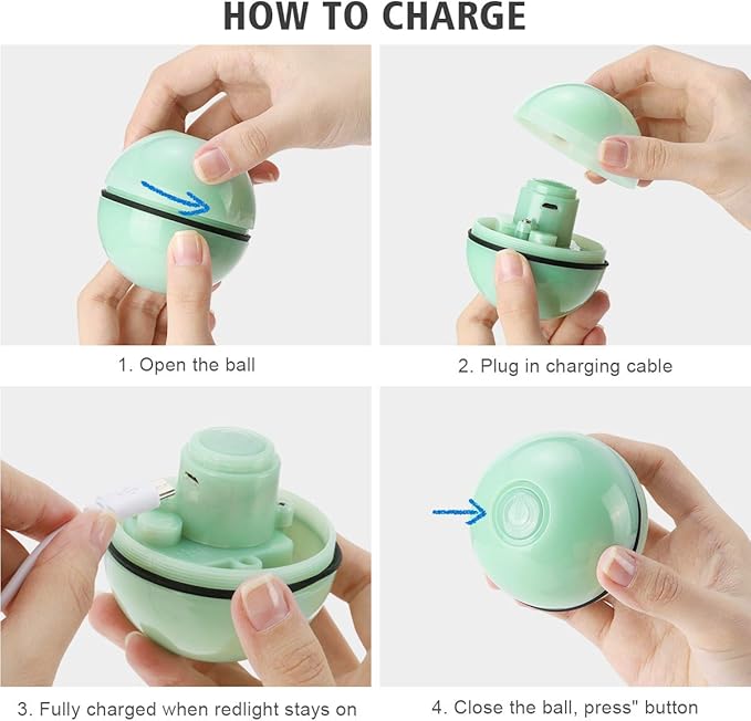- 【Upgraded USB Rechargeable】 - Built-in 250 mAh Li-ion battery, can last 4 hours after 1.5-hour charging. Can automatically shut off after 30 minutes, prevent your kitty from losing interest in the toy ball and perfect for those who don’t have time with their cats and dogs.