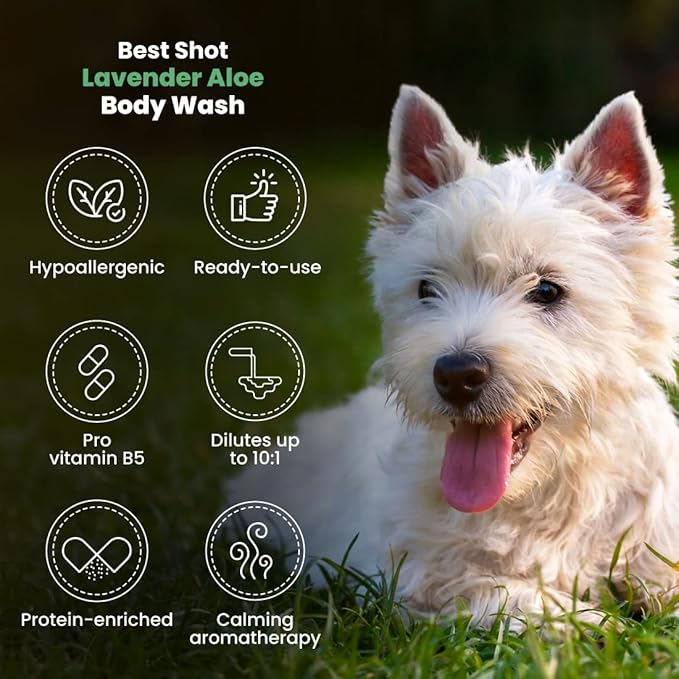 - Body Wash: Give your pet a spa-like experience from the comfort of your home with Best Shot’s refreshing and hydrating body wash. The body wash gently cleanses and nourishes your pet's skin and fur, leaving an aromatic fragrance behind