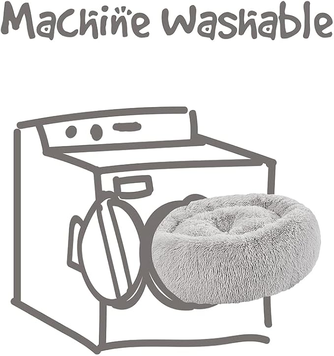 Friends Forever Donut Dog Bed Faux Fur Fluffy Calming Sofa For Large Dogs, Soft & Plush Anti Anxiety Pet Couch For Dogs, Machine Washable Coco Pet Bed with Non-Slip Bottom, 36"x36"x8" Grey