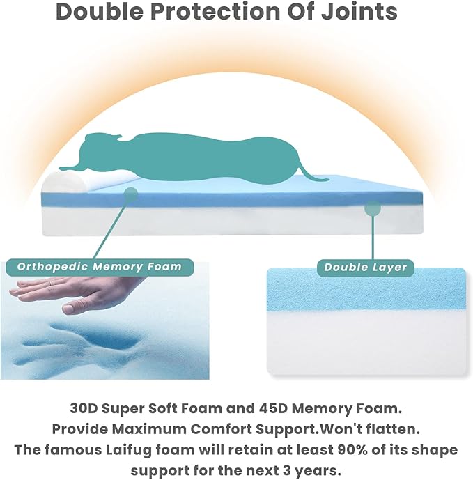 - Multi-Layered Sponge: The combination of high-density sponge support material on the bottom and comfortable premium memory foam on the top can keep your dog off the hard floor below while supporting and cushioning their body, can hold dogs within 25-100 lbs . Holds on easily without sinking, making it your pet's favorite sleeping spot.