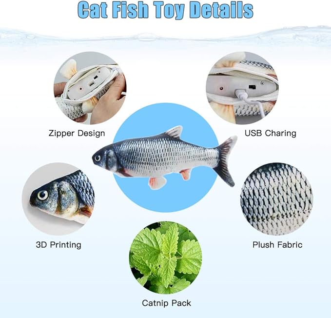- 【Realistic Fish Design】Using 3D printing process, this vivid motion kitten toy looks like a real fish. It will keep your kitty on her paws and engaged in real time.