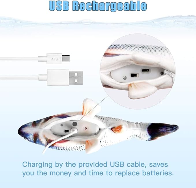- 【USB Chargeable】This wiggle fish toy is USB chargeable which saves you from the hassle and costs to replace batteries. The infused motor is detachable for convenient cleaning of the plush toy.
