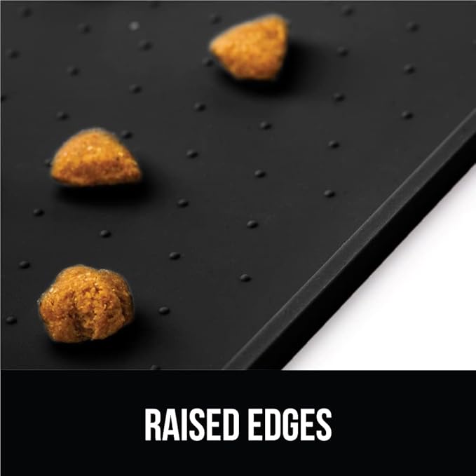 GORILLA GRIP 100% Waterproof Raised Edge BPA Free Silicone Pet Feeding Mat, Dog Cat Food Mats Contain Spills Protects Floors, Placemats for Cats and Dogs Water Bowl, Pets Accessories 32x24 Black