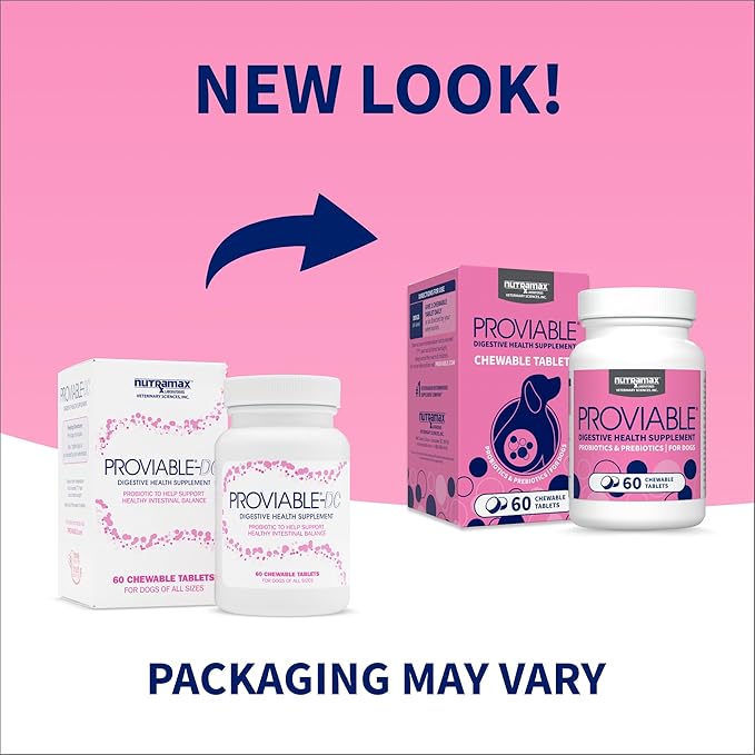 Nutramax Proviable Probiotics for Dogs, Daily Digestive Health Supplement with Multiple Strains of Bacteria, Dog Probiotics Plus Prebiotics, 60 Chewable Tablets