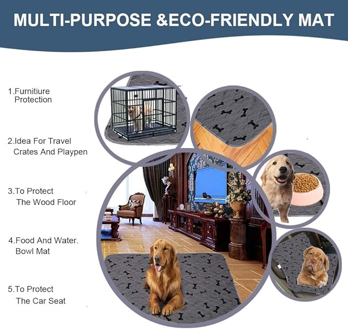 - Multipurpose - Reusable extra large - 48" x 60"dog potty pet training pads , use in dog kennel & dog crates for large dogs, training puppies pee in playpen or assisting incontinence elderly,as whelping pads & incontinence bed pads & waterproof floor mat for pets. They are ideal for protecting carpet,wood floor,furniture,sofa,car seats during travel.
