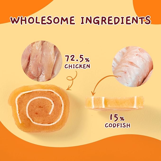 - GRAIN-FREE: No artificial colours, flavours or other additives are added to chicken codfish dog and cat treats