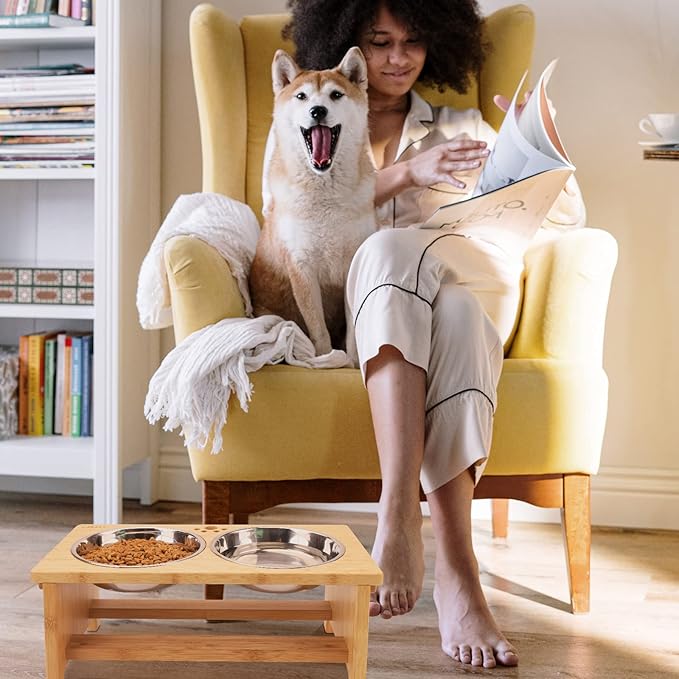 - HIGH QUALITY AND DURABLE:The raised dog feeder is made of tough bamboo, durable, smooth surface after multiple polishing,easy to clean.Three colors to choose from, there is always a suitable for your home.