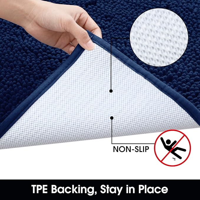 HOMEIDEAS Doormat Indoor Entrance, 32"x20", Highly Absorbent Chenille Muddy Dog Washable Non Slip Front Welcome Door Floor Mat for Entryway, Navy Blue