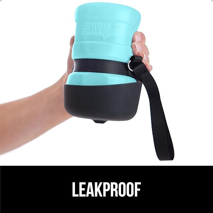 - LEAKPROOF DESIGN: pet water bottle is designed with an easy twist lock mechanism located at the bottom of the silicone bowl; twist the lock to create an air tight seal that helps prevent water from leaking out of the bottle