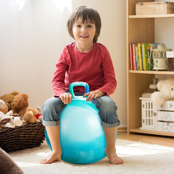- PERFECT HOPPING TOY FOR KIDS: This bouncy ball with handle allows children to get good exercise, improve balance and posture. Suitable for children from 3 years. Weight capacity 220 lbs. The bouncy ball has the correct stiffness and elasticity to allow you to bounce high enough