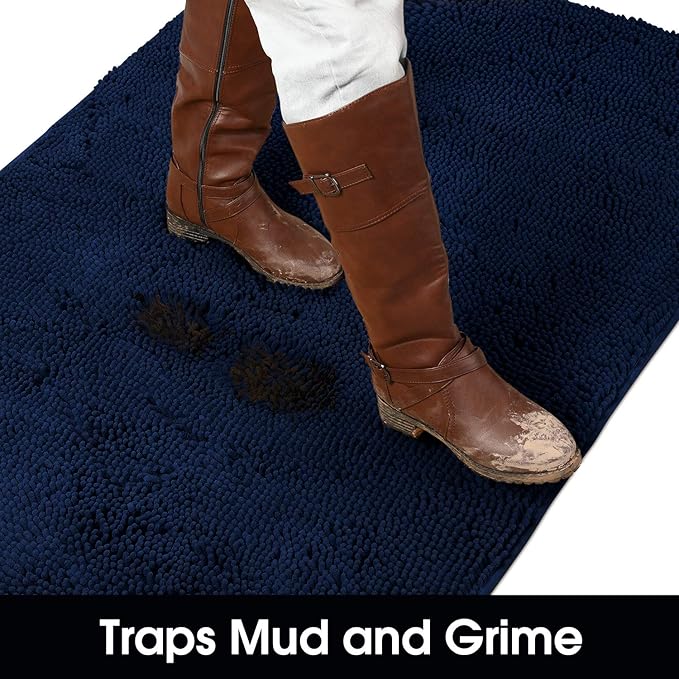 HOMEIDEAS Doormat Indoor Entrance, 60"x36", Highly Absorbent Chenille Large Muddy Dog Washable Non Slip Front Welcome Door Mat for Entryway, Navy Blue