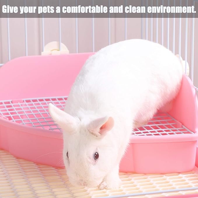 - [EASY TO CLEAN] Rabbit potty box's mesh design is large, easy to clean up feces leakage. You can put some bedding or liners on the bottom,and replace them regularly.When the toilet tray needs to be cleaned, it only needs to be disassembled. After removing the toilet, rinse it with water