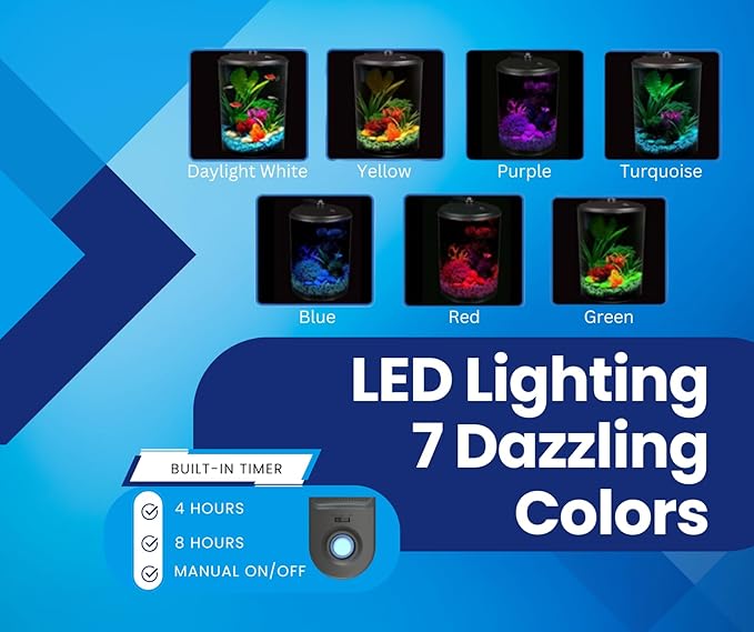- DAZZLING COLORS: Energy-efficient LED lighting with 7 dazzling color selections to brightly illuminate your fish; choose daylight white, blue, green, amber, aqua, purple, or red depending on the time of day or your viewing pleasure.