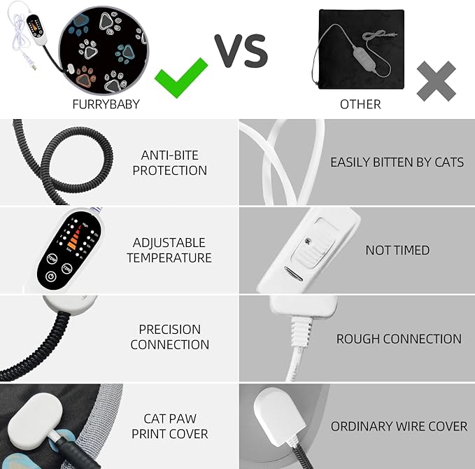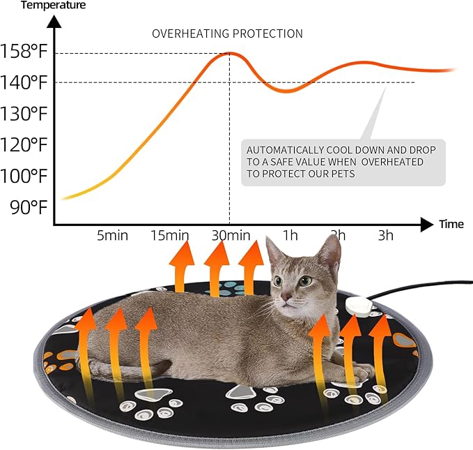 - 【SAFETY FIRST】- The cat heating pad is a built-in intelligent overheat protection sensor, will maintain a constant temperature you set when your pet sleep on it